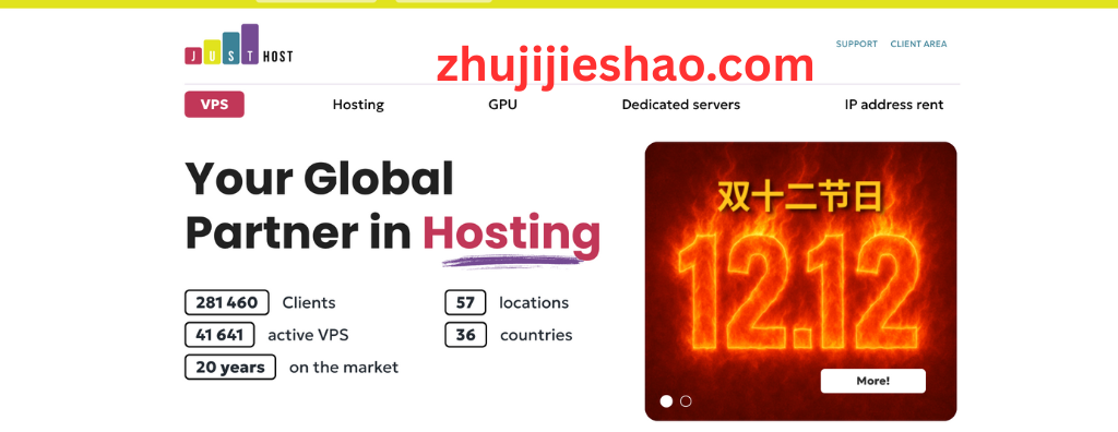 从现在开始到12月21日,justhost对中国区客户开启双十二特特促销,低至5折优惠,可选机房有:美国(西雅图、达拉斯)、德国、荷兰、瑞士、芬兰。VPS为KVM虚拟,NVMe硬盘,支持在不同机房之间切换(更换IP),根据配置从低到高给与300~750Mbps带宽,不限制流量随便跑。付款方式支持:信用卡、20多种加密货币、PayPal、支付宝、银联、PerfectMoney,15天退款保证。